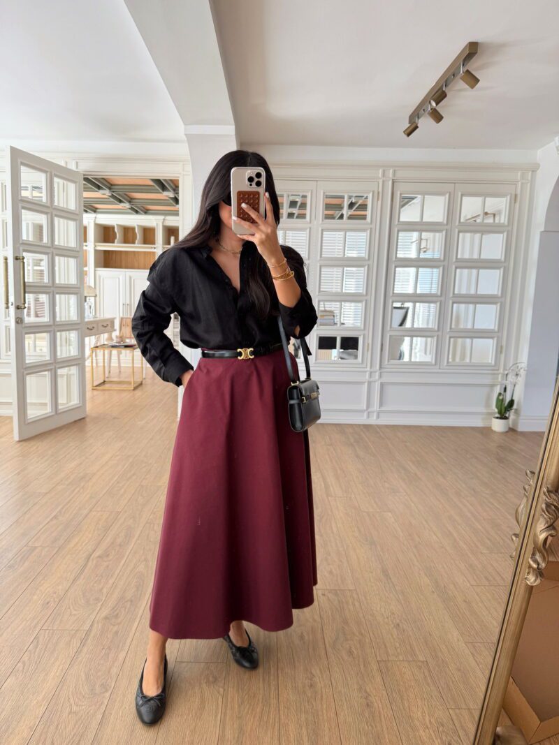 Bianca Siyah Etek Ucu Dantelli Saten Midi Boy Kalem Etek