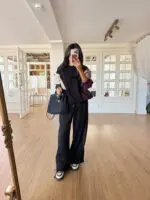 Çift Fermuar Detaylı Triko Sweat-Pantolon Takım