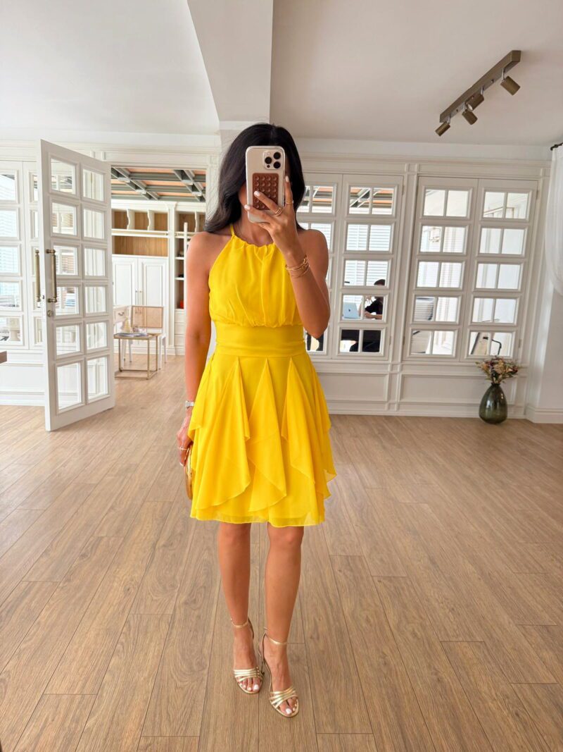 Faby Sıfır Kol Kuşaklı Bel Lastikli Volanlı Elbise