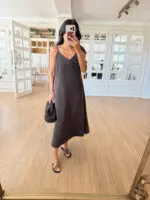 Tessa Kahve Askılı Dantel Detaylı Astarlı Elbise