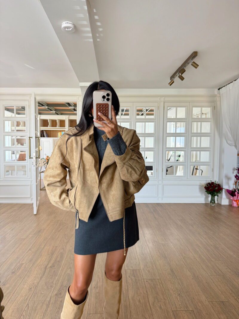 Sona Özel Seri Haki-Lacivert Renk Geçişli Çıt Çıtlı Jean Ceket