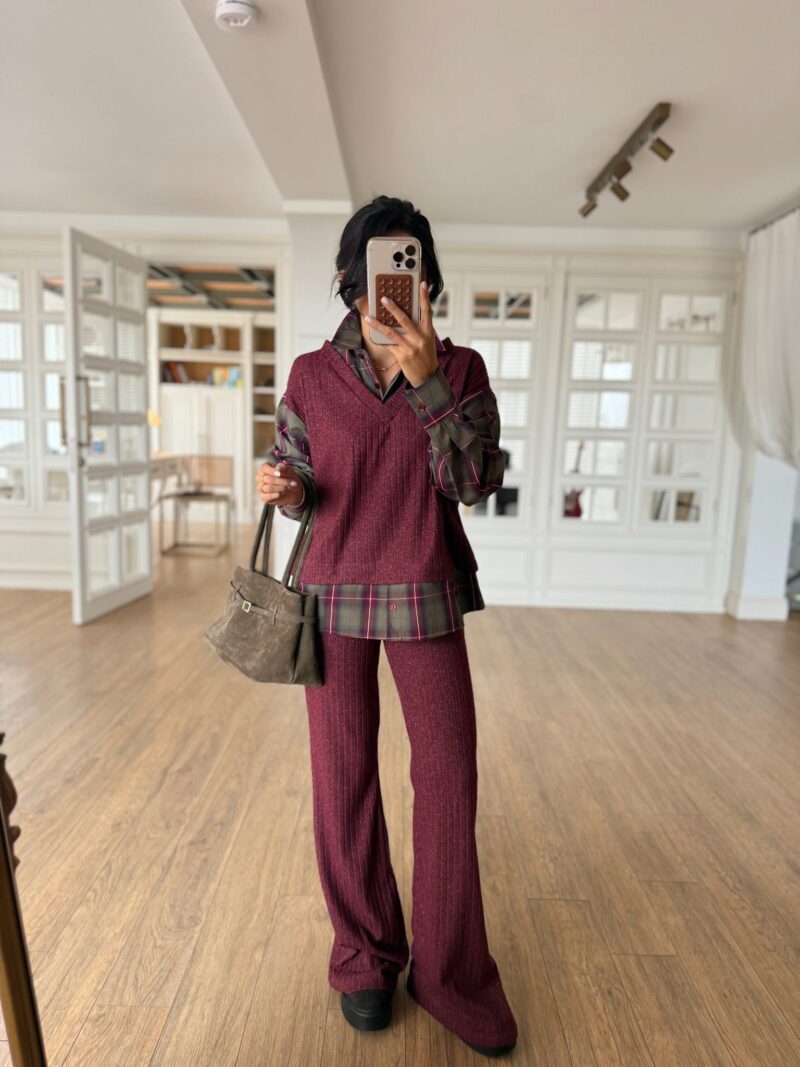 Sahra Oduncu Gömlek Detaylı Triko Takım