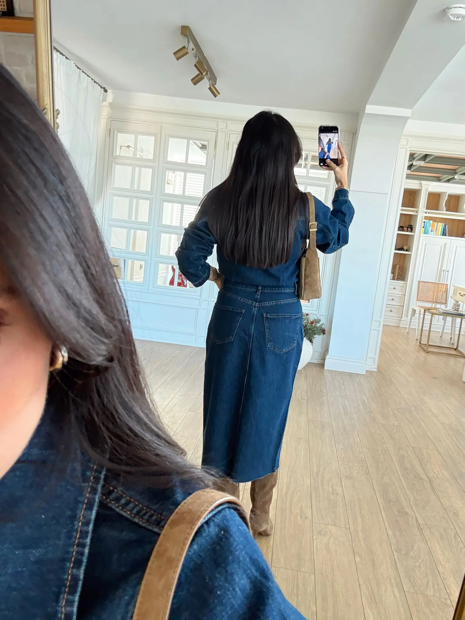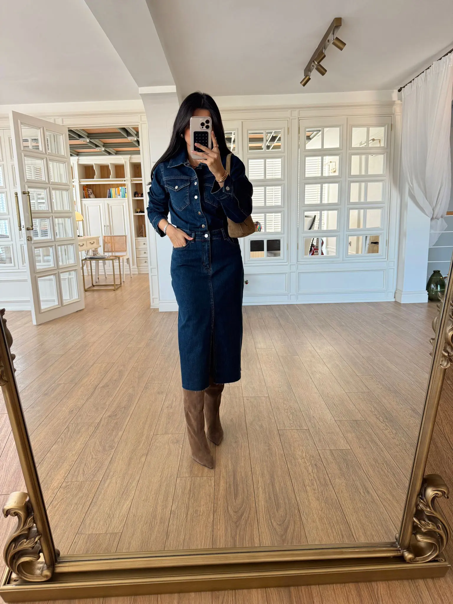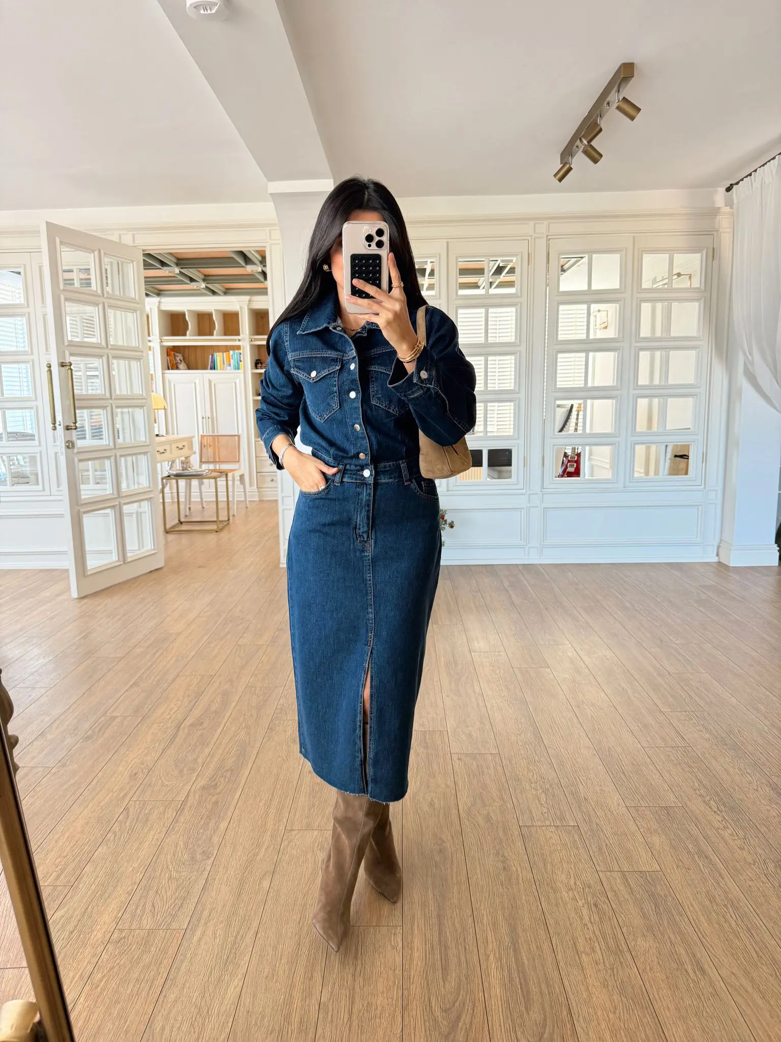 Sansa Koyu Mavi Çıt Çıtlı Düğmeli Ön Yırtmaçlı Jean Elbise