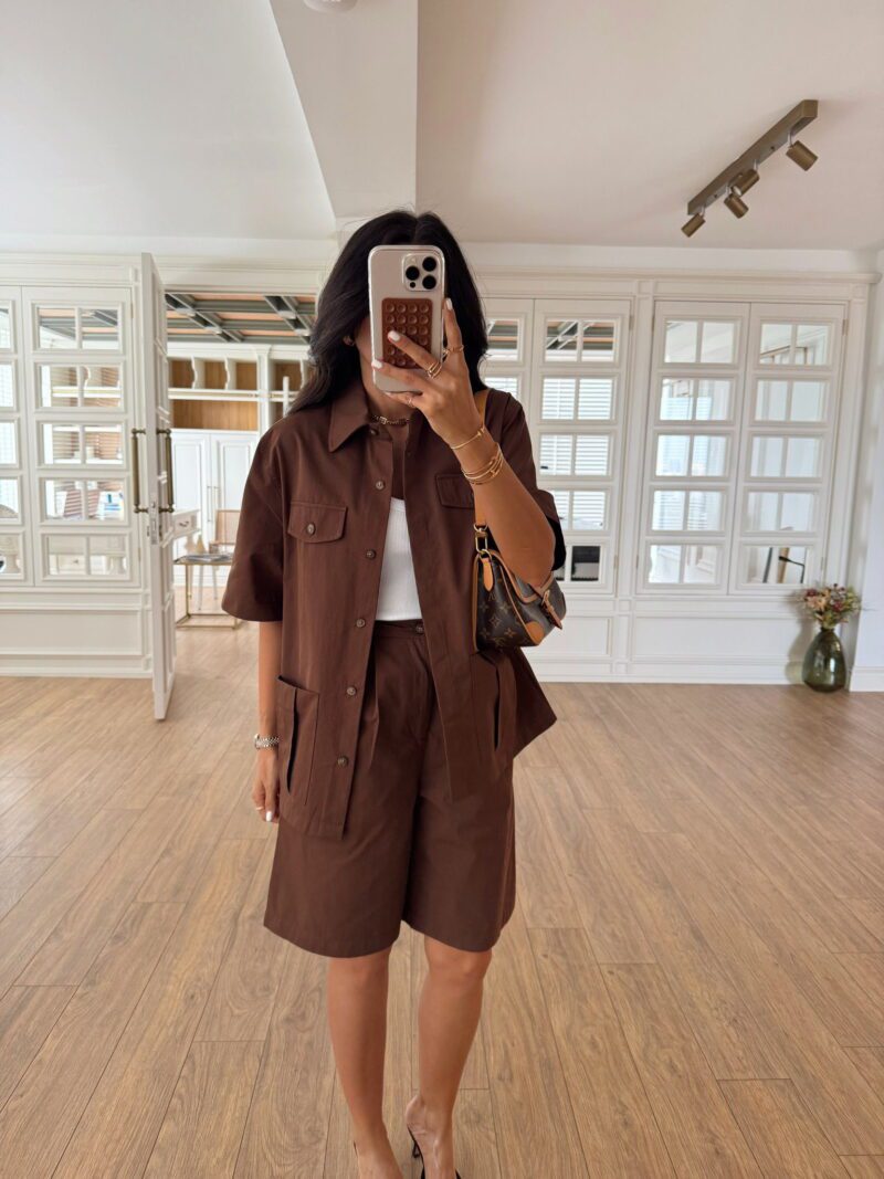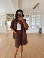 Vorkisa Cep Detaylı Gömlek Şehir Boy Şort Takım